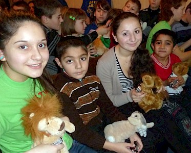 In den vergangenen zwei Wochen haben wir mit der Handarbeitsgruppe Kissen genäht. Ehrfurchtsvoll stehen die Mädchen vor der elektrischen Nähmaschine. Doch schon bald ist die anfängliche Scheu überwunden, als Lena Grabenko den Stoff, den unser großer Lastwagen aus Deutschland mitgebracht hat, auf den Tisch legt, auf den lustige Kühe gedruckt sind und ihren Schülerinnen erste Instruktionen gibt.