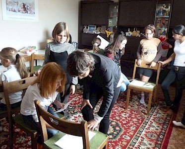 Heute denken wir über Beziehungen nach und bilden kleine Gesprächsgruppen, die über ein Thema sprechen müssen. Danach versammeln wir uns wieder, um über unsere Erfahrungen nachzudenken.