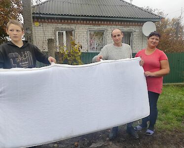 Viele Flüchtlinge, die im Frühjahr oder Sommer kamen, konnten auf Decken auf dem Boden schlafen. Doch jetzt ist es in den Häusern zu kalt dafür. Wenn die Menschen schon kein Bett haben, so brauchen sie wenigstens eine Matratze. Wie gut, dass wir mit unseren Hilfsgütertransporten Matratzen zu Flüchtlingen, aber auch zu Familien mit geringem Einkommen bringen konnten. Danke für alle Hilfe und Unterstützung!