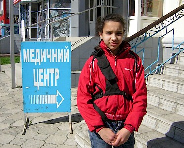 Olga Schumilo, unsere Krankenschwester, ist oft mit ihren Patienten unterwegs und besucht einen Doktor nach dem anderen. Eine Patientin ist Kristina Romaschenko, die nach einigen Terminen bei einem Augenarzt eine Brille erhalten hat. Nun versuchen wir ihr mit ihren Nierenproblemen zu helfen.
