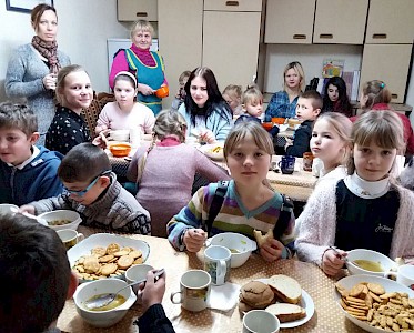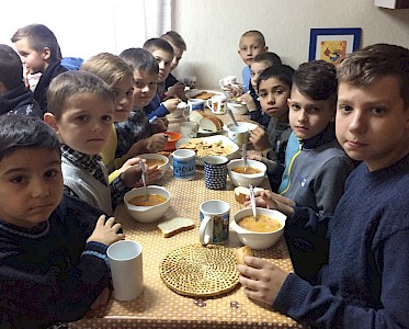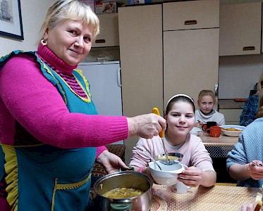 „Meine Lieblingssuppe ist Borscht. Die kann niemand so gut kochen wie Tante Oxana!“ Die meisten unserer Gäste bekommen zu Hause kaum etwas zu Essen. Bereits einige Minuten bevor unsere Suppenküche in „Villa Sonnenschein“ ihre Türen öffnet, steht eine lange Schlange von hungrigen Kindern im Flur.
