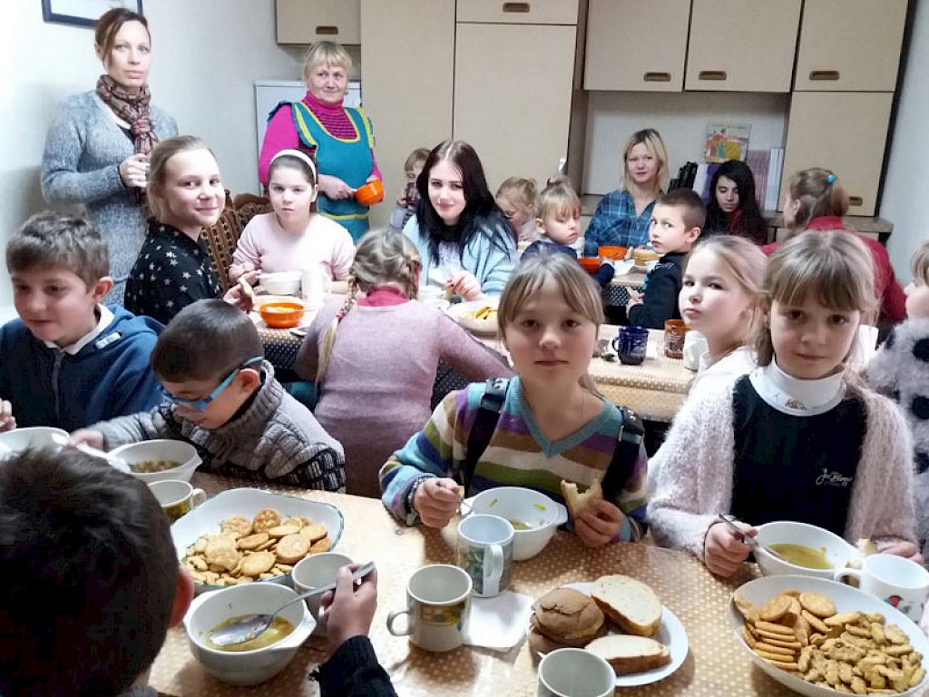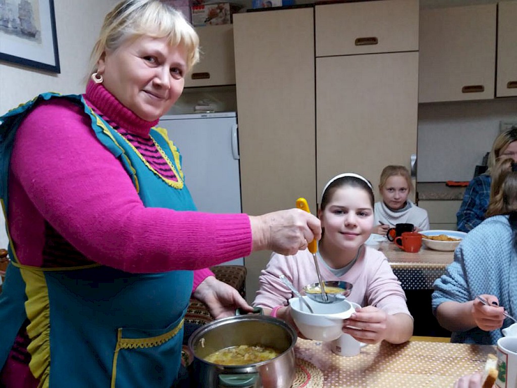 „Meine Lieblingssuppe ist Borscht. Die kann niemand so gut kochen wie Tante Oxana!“ Die meisten unserer Gäste bekommen zu Hause kaum etwas zu Essen. Bereits einige Minuten bevor unsere Suppenküche in „Villa Sonnenschein“ ihre Türen öffnet, steht eine lange Schlange von hungrigen Kindern im Flur.