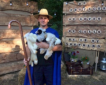 In einem lustigen Spiel werden wir in Teams eingeteilt. Von jeder Gruppe werden einer Person die Augen verbunden. Sein Team muss nun Worte zurufen, um an ein Ziel zu führen. Das wilde Durcheinander ist ein anschlauliches Beispiel in unserer Morgenandacht.