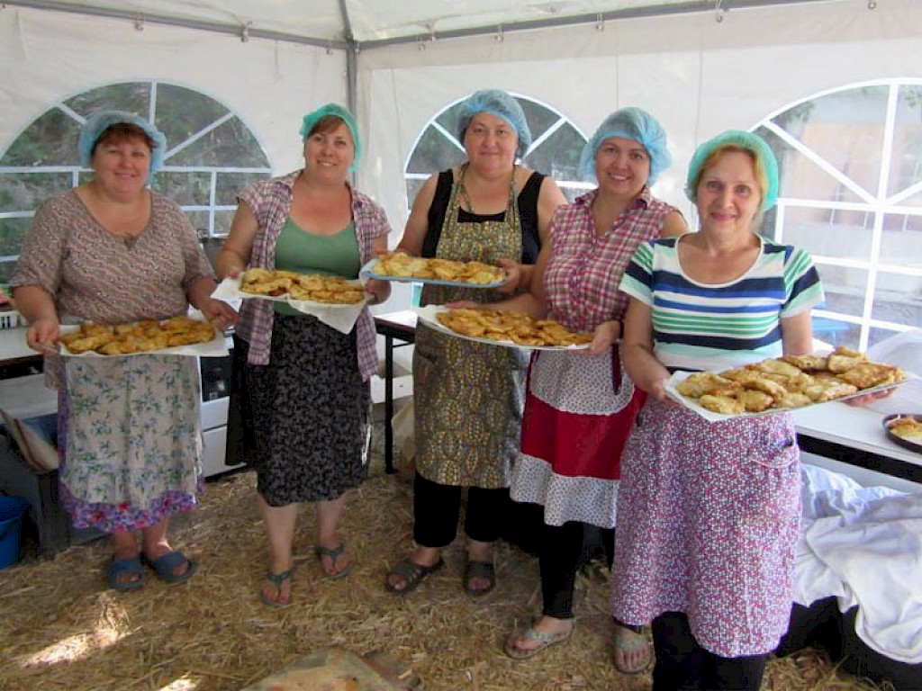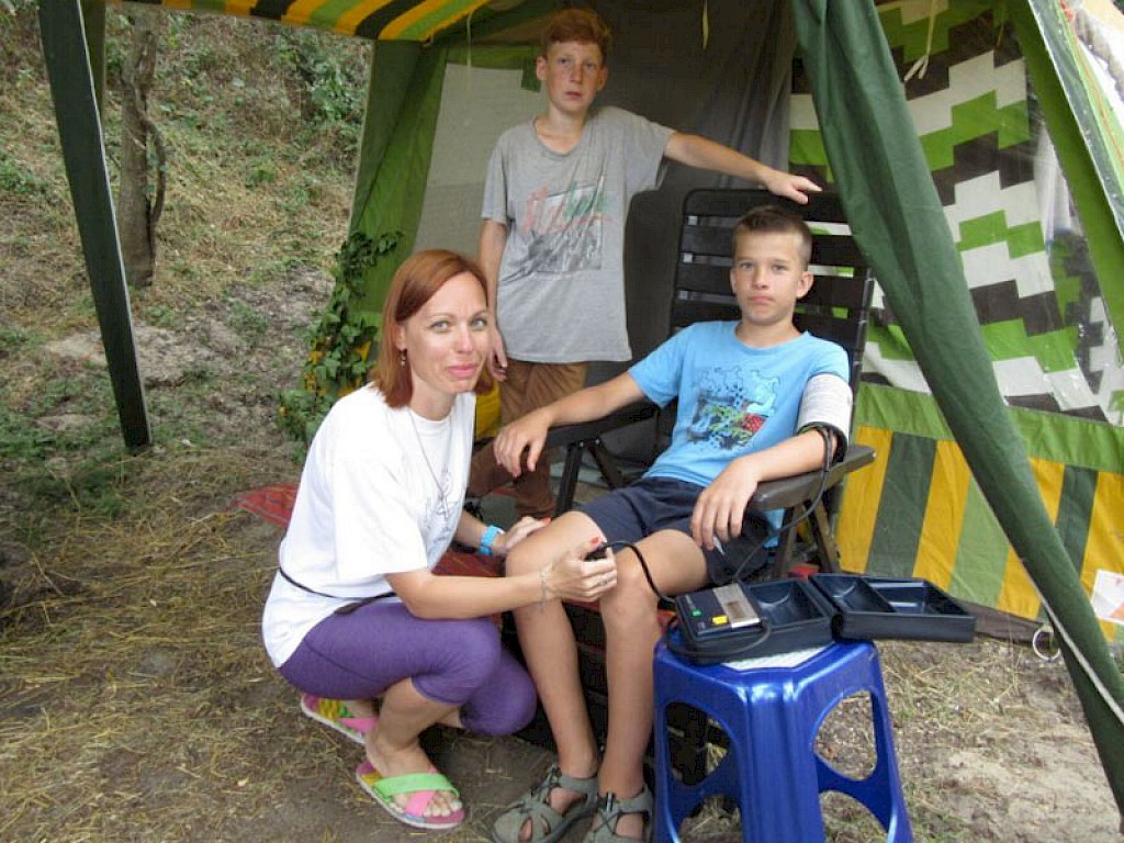 Aus der Küche duftet es bereits verführerisch. Unsere Köchinnen backen leckere Pfannkuchen. Olga Schumilo, die unsere medizinische Abteilung leitet, hat immer genug zu tun. Jemand wurde von einer Biene gestochen, einer hat sich den Fuß verstaucht, sie ist Tag und Nacht im Einsatz. Lera leidet unter Asthma. Da braucht sie bei einem Asthmaanfall Olgas Betreuung.