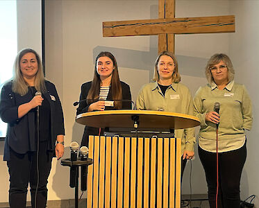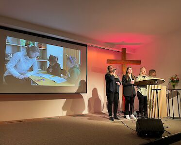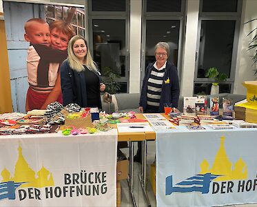 Soruschka freute sich, über die Arbeit von Brücke der Hoffnung berichten zu können. Rebekka Rudat erzählte von ihrer Reise in die Ukraine. Die Sängerinnen bedankten sich für alle Unterstützung. Die Paten der Kinder und Familien in der Ukraine übermittelten Grüße und hatten viele Fragen an unsere Sängerinnen.