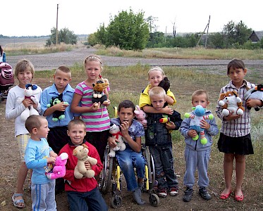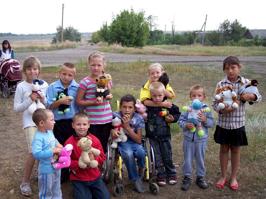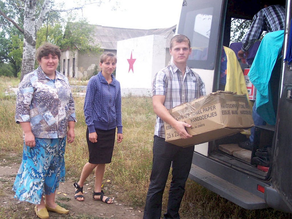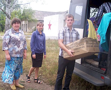 Schon früh am Morgen packen unsere Mitarbeiter in Krinitschki ihren Bus mit Hilfsgütern aus Deutschland. Dann folgen die Verstärkeranlage und die Musikinstrumente. Heute haben wir einen Einsatz in dem „Vergessenen Dorf“ Blagodatnoje.