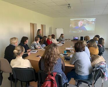 Ira Kurbatowa sprach über unsere Hilfsprojekte, Lena Uchnal über unser Kinderprogramm und unser Missionsleiter, Burkhard Rudat, erfrischte unsere Mitarbeiter mit einer ermutigenden Andacht.