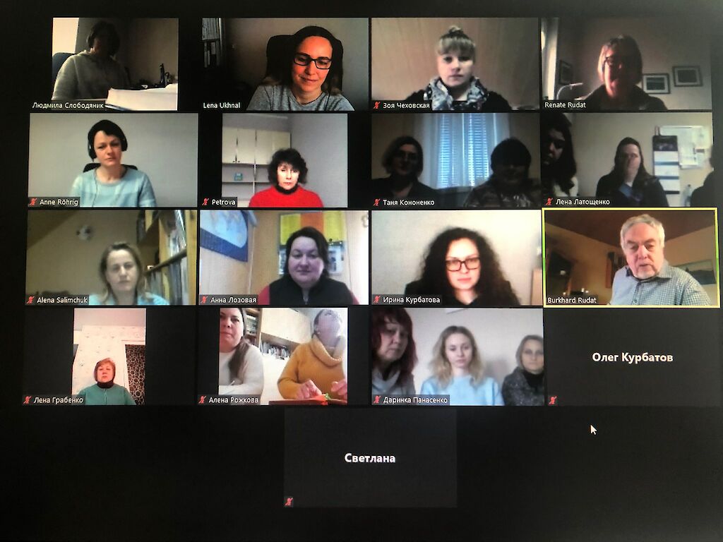 Wir sind froh, dass wir uns während der Corona-Krise wenigstens im Internet treffen können. Regelmäßig hält unser Missionsleiter, Herr Rudat, ermutigende Andachten. Wir treffen uns aber auch in kleinen Gruppen, mit Mitarbeiter aus einem bestimmten Arbeitsbereich.