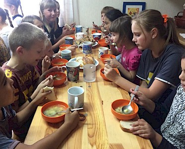 Allein in „Villa Sonnenschein“ sitzen jeden Mittag über 70 Jungen und Mädchen am Mittagstisch. Jeden Tag kommen neue Gäste hinzu. Da ist unsere Köchin Oxana Lebed gefordert. Bereits am frühen Vormittag beginnt sie mit ihrer Arbeit und in Minijobs stehen ihr einige Mädels hilfreich zur Seite, sonst würde sie es nicht mehr schaffen.