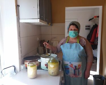 In diesen Tagen sind wir jeden Tag mit unserer Aktion „Mobile Suppenküche“ unterwegs. Wir haben angefangen große Mengen Suppe zu kochen, die wir in Glasbehälter füllen. Dazu wird viel Brot gebacken. Unsere Mitarbeiterinnen sind vom frühen Morgen an im Einsatz.