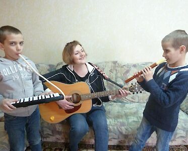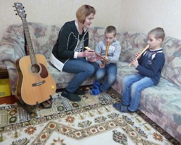 Heute haben wir in unserem „Zufluchtsort“ in Pawlowka über Musik gesprochen und haben unseren Mädchen und Jungen verschiedene Musikinstrumente vorgestellt. Sie sollen lernen, dass jedes Musikinstrument unterschiedlich klingt.