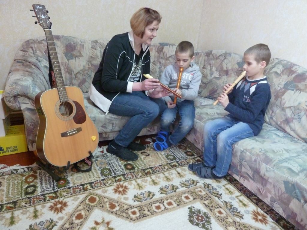 Heute haben wir in unserem „Zufluchtsort“ in Pawlowka über Musik gesprochen und haben unseren Mädchen und Jungen verschiedene Musikinstrumente vorgestellt. Sie sollen lernen, dass jedes Musikinstrument unterschiedlich klingt.