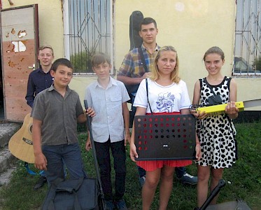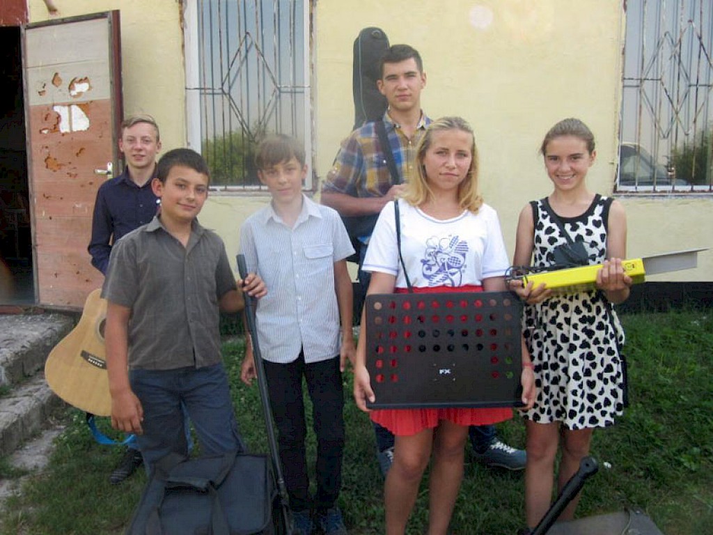 In Boschedarjewka haben wir vor einiger Zeit eine Musikgruppe gegründet, die ihre Musikinstrumente aus Deutschland erhalten hat. Jede Woche wird eifrig geübt, denn in der Zwischenzeit stehen erste kleine Auftritte bei unseren Einsätzen mit Hilfsgütern auf dem Programm. Da werden im Internet neue Lieder gesucht, da werden Arrangements geschrieben.