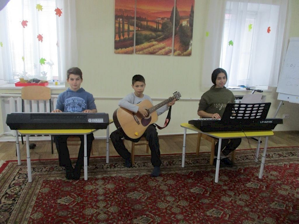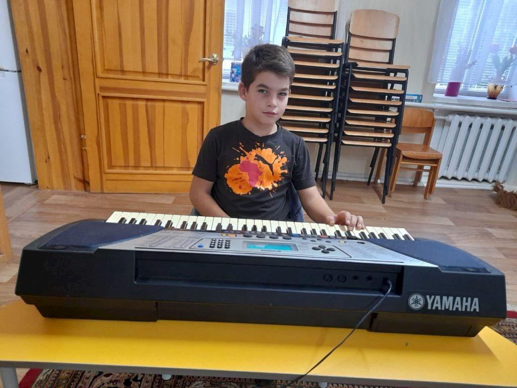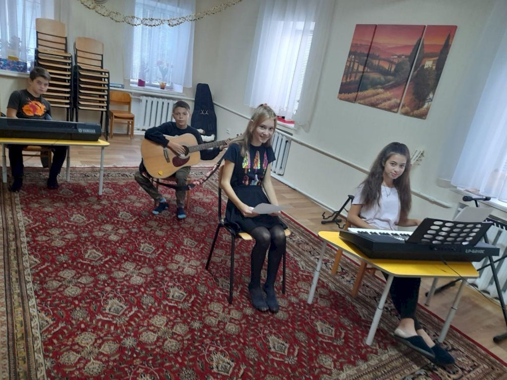 Tanja Kononenko, die unseren „Zufluchtsort“ in Odarjewka leitet, hat eine besondere musikalische Begabung. Sie lernt mit ihren kleinen Schülern neue Lieder und unterrichtet sie, Musikinstrumente zu spielen.