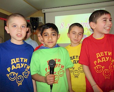 Bei unseren „Regenbogenkindern“, in unserem Kinderchor, treffen sich Jungen und Mädchen, die besonders gerne singen. Dann schallen ihre Lieder durch unsere „Villa Sonnenschein“ und oft begeistern sie ihre Eltern bei Festen, zu denen wir sie einladen.
