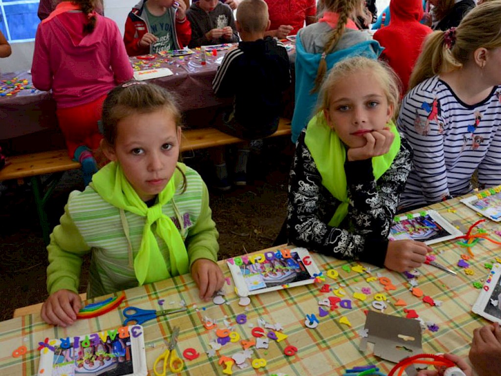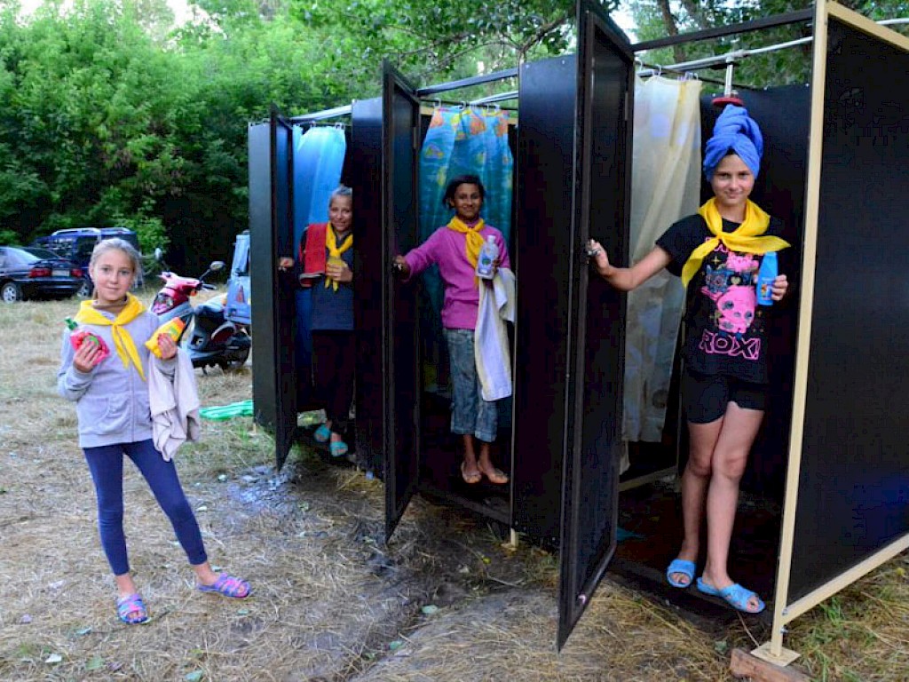 Nach abwechslungsreichen Tagen, versuchen wir heute ein wenig zur Ruhe zu kommen. In Handarbeitsgruppen machen wir Bilderrahmen für ein Erinnerungsfoto von dem eigenen Team. Danach toben einige über das Fußballfeld, andere hüpfen auf dem Trampolin. Kinder aus „Vergessenen Dörfern“ stehen in unserem Sommerlager zum ersten Mal unter einer warmen Dusche. Da gibt es manchmal eine lange Schlange.