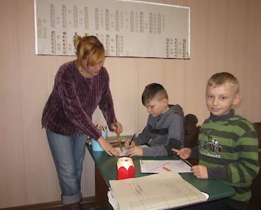 Es ist ganz still im Klassenzimmer von unserem „Tageskinderheim am See“. Die Jungen sind in ihre Schulbücher vertieft. Unsere Erzieherinnen haben ihnen Aufgaben gestellt, die sie nun lösen müssen. Ein Problem ist, dass die meisten unserer Mädchen und Jungen nicht logisch denken können.