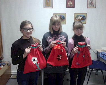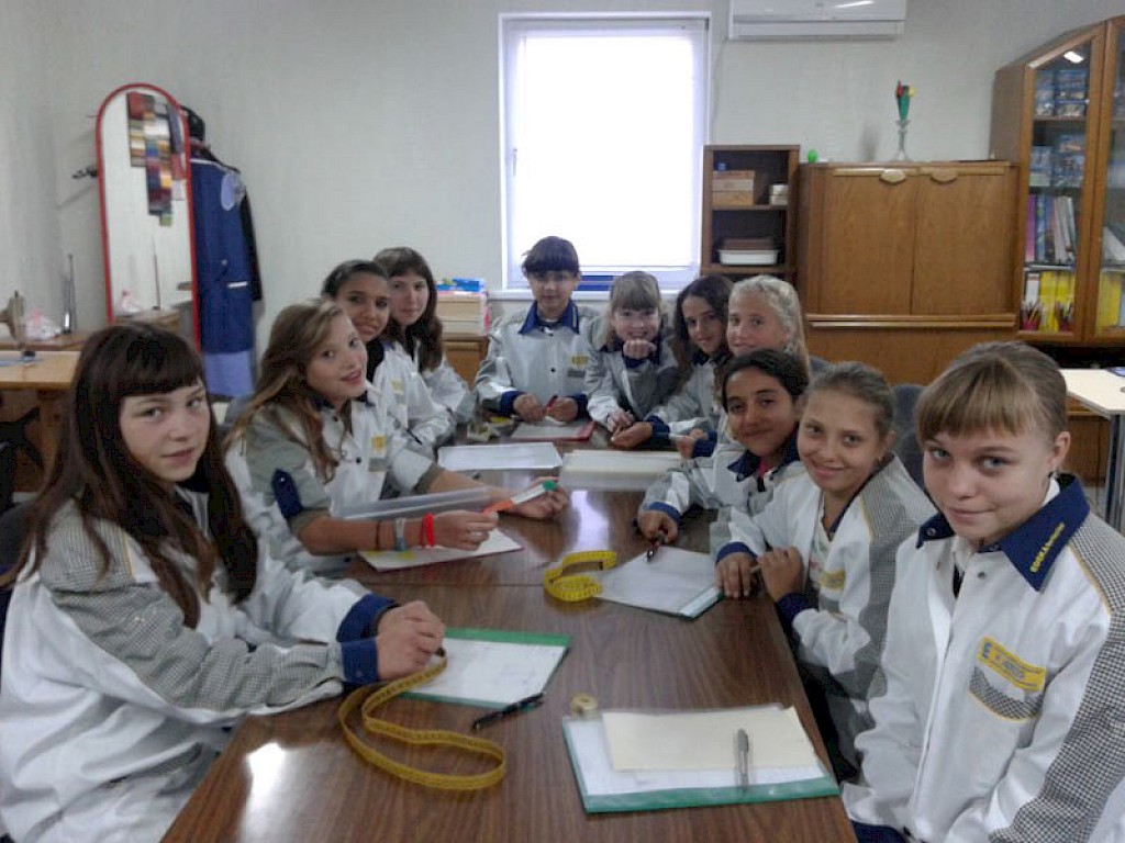 Nun war es an der Zeit an Nachwuchs zu denken. Eine neue Gruppe wird langsam an die „Lehrwerkstatt“ herangeführt. Unter der Leitung von Lena Grabenko lernen sie zuerst einmal Ordnung zu halten und mit der Hand zu nähen. Sie lernen unterschiedliche Materialien und Stiche kennen.