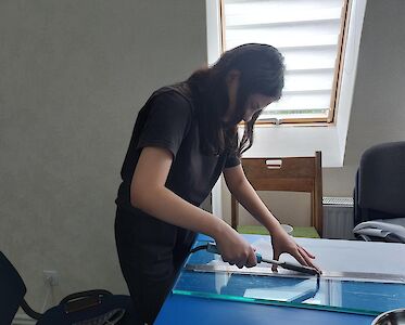 Es sind nur noch wenige Tage, dann beginnt unser lang erwartetes Sommerlager! In unserer Lehrwerkstatt sind die Mädchen fleißig am Nähen. Es werden bunte Halstücher und farbenfrohe Fahnen für die Mannschaften vorbereitet. Ältere Requisiten müssen repariert werden.