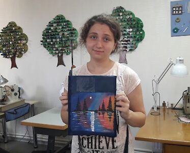 Nastja Bondarewa ist ein Mädchen, das ganz besondere Talente hat. Sie ist eine talentierte Malerin, die aber auch wunderschöne Taschen herstellt, die wir auf unserer Tournee „Soruschka 2020“ mitbringen werden.