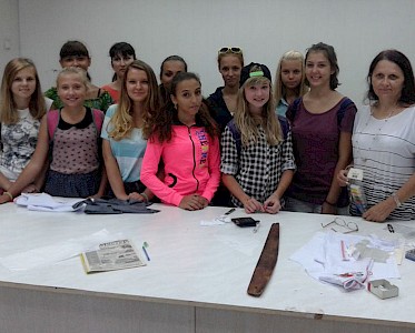 Hier geht es nicht so lustig zu, wie in unserer „Lehrwerkstatt“, da gibt es Befehle und man muss gehorchen. Hier muss Leistung erbracht werden, es geht darum etwas zu produzieren, was verkauft werden kann. Larissa erzählt unseren Mädchen, wie sie ihre Werkstatt aufgebaut hat, wieviel Kraft ihre Arbeit jeden Tag kostet.
