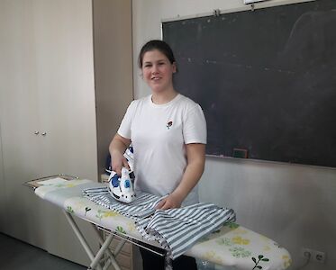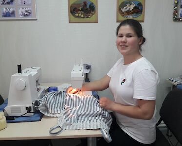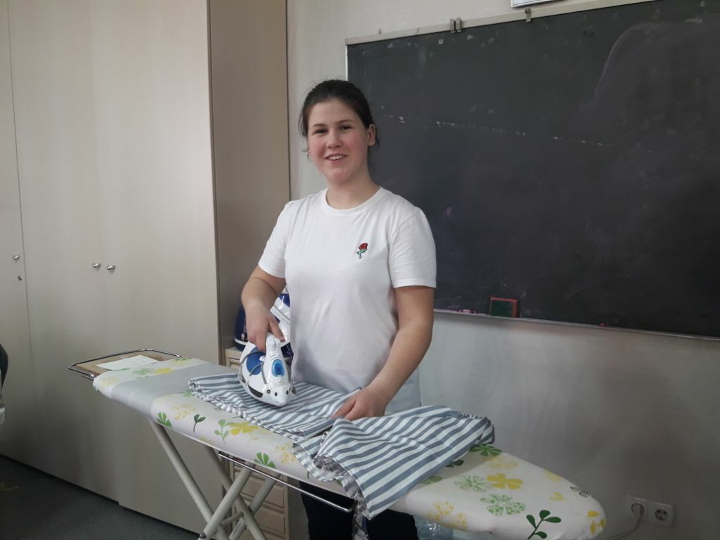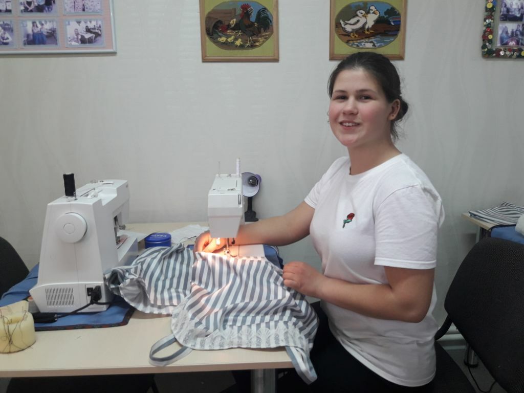 Nastja ist bereits die rechte Hand von Lena Grabenko, die unsere „Lehrwerkstatt“ leitet. Im Juni wird sie ihre Schulausbildung abschließen, dann beginnt sie auf einer Schule ihre Ausbildung zur Näherin. Sie wohnt in unserer „Villa Regenbogen“ und sie wird einige Stunden die Woche in unserer „Lehrwerkstatt“ arbeiten, um sich ihren Lebensunterhalt zu verdienen.