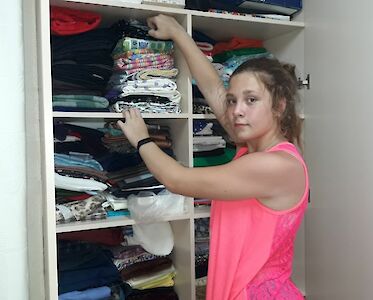 Lena Grabenko, die unsere Lehrwerkstatt leitet, ist in der Zwischenzeit ihre wichtigste Bezugsperson und Nastja wird immer mehr ihre beste Helferin.