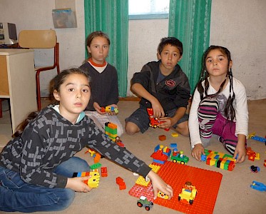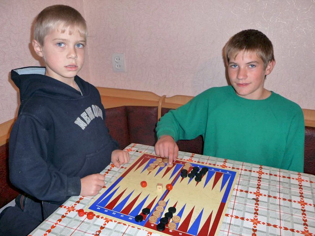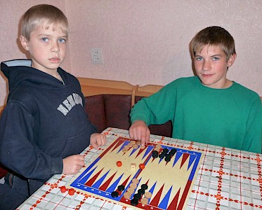 Gespannt sitzen die Jungen und Mädchen um große Tische und warten aufgeregt auf Ludas Erklärungen. Die Kleinen vergnügen sich an einem neuen Memory, die Großen haben schon schwerere Spiele.