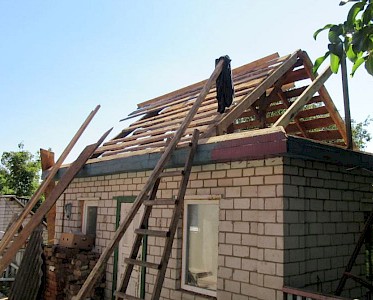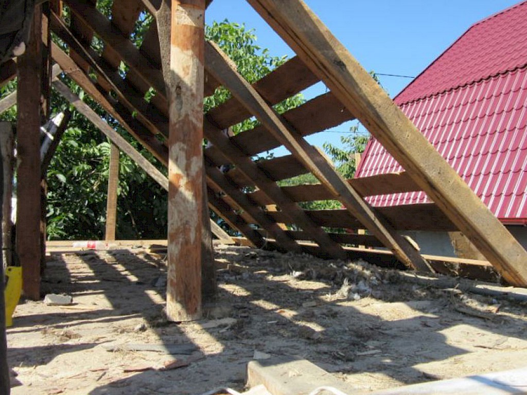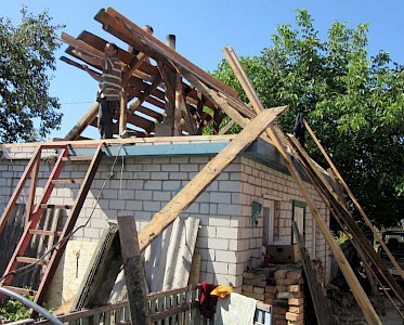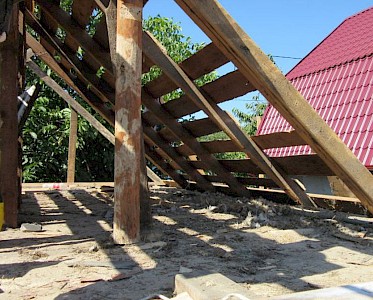 Neben dem Haupthaus steht ein kleines Haus mit einem Zimmer, einer Küche und einem winzigen Bad. Hier könnte vielleicht einmal eine Hausmutter wohnen. In dieser Woche haben wir das alte Dach abgerissen und nun arbeiten wir an einem neuen Dachstuhl.