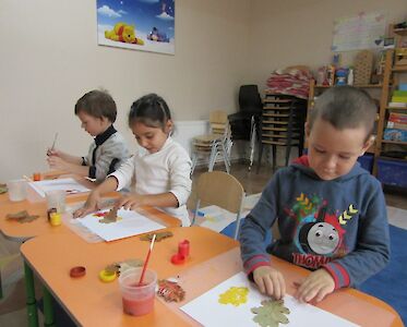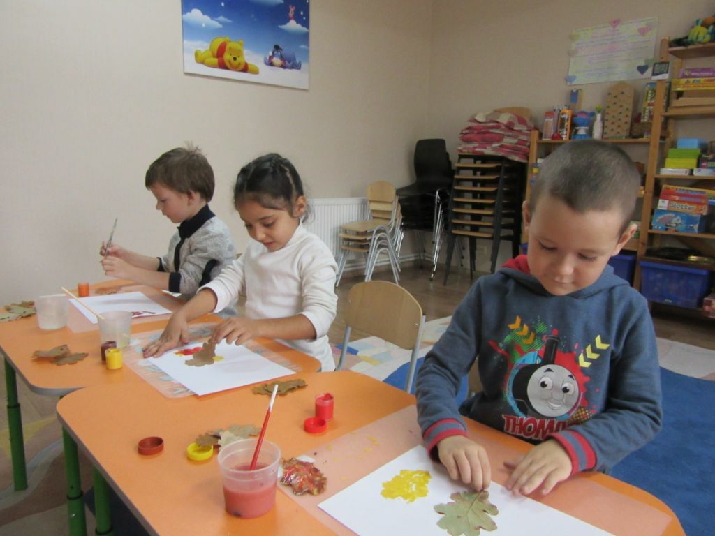 An schönen Tagen wandert Wika Gusenok, die unser „Spatzennest“ leitet, mit ihnen durch die Herbstlandschaft und sie versuchen gemeinsam Lösungen zu finden. Sie nehmen bunte Blätter in ihre Hand, sammeln Kastanien.