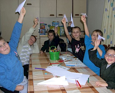 Am Ende gibt es noch einen spannenden Wettbewerb. Welches Flugzeug kann am weitesten fliegen. Nun steht die Flugzeugausstellung auf einem Schrank in „Villa Sonnenschein“ und jeder kann die stolzen Flieger bewundern.