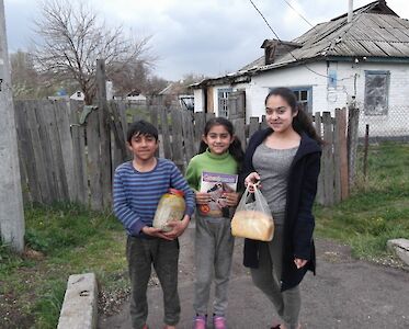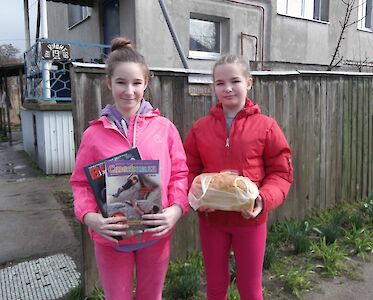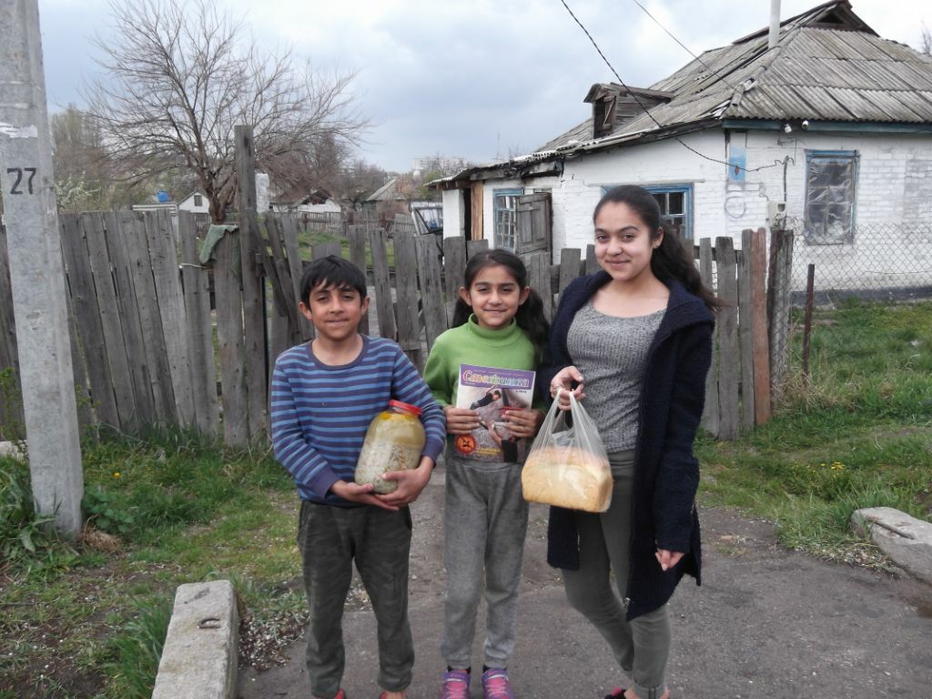 Natürlich sieht in diesem Jahr auch in der Ukraine das Osterfest ganz anders aus als in der Vergangenheit. Heute ist ein Brot und ein Vorratsglas mit Suppe für viele Familien ein wertvolles Geschenk. Außerdem schenken wir allen, die wir besuchen, eine christliche Zeitschrift.