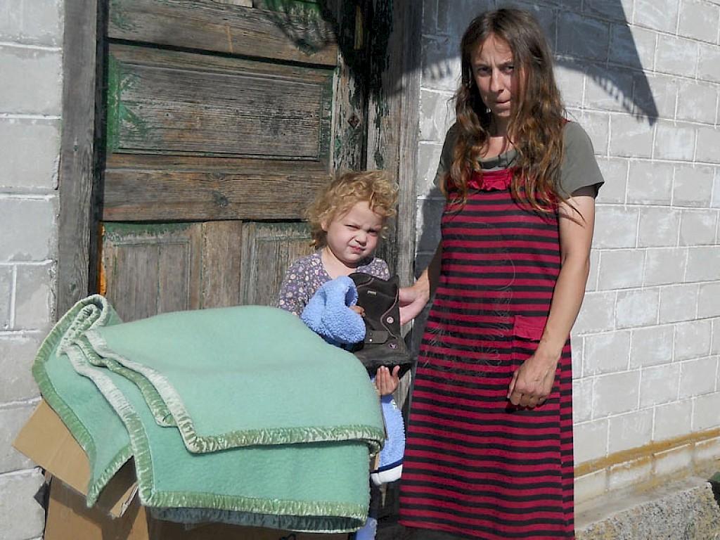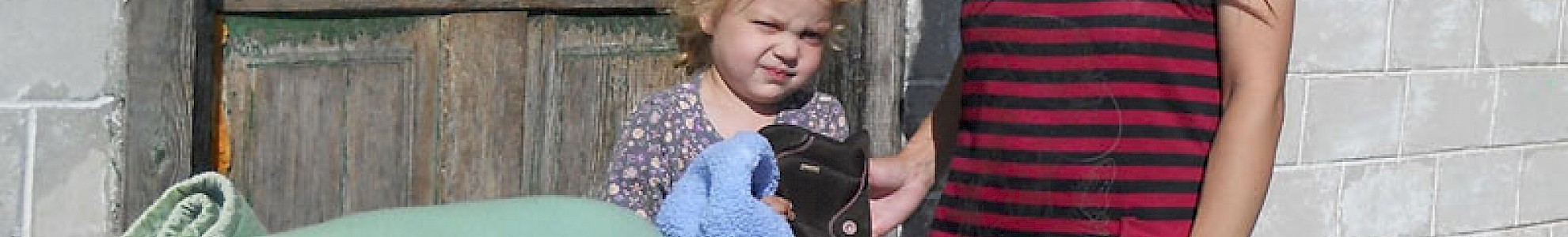 Ihre Mutter zieht oft tagelang über die Dörfer und lässt Oxana mit ihren kleinen Geschwistern allein. Oxana kommt hauptsächlich in unseren „Zufluchtsort“ um zu essen, um sich für ihre schwere Aufgabe zu stärken und um ein wenig zur Ruhe zu kommen.