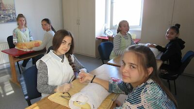 An ihrem Unterricht sind verschiedene Mitarbeiterinnen beteiligt. Einige kochen mit ihnen, backen leckere Kuchen. Andere erklären, wie man eine Wohnung und die Fenster putzt, den Teppich saugt. Wir sprechen darüber, wie man einkaufen geht, auf was man achten muss. mehr