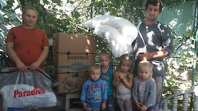 Für alle Dorfbewohner aus Andrusowka ist es immer ein Festtag, wenn wir sie mit Hilfsgütern besuchen, besonders, wenn der Winter vor der Tür steht. Neugierig durchstöbern sie alle Bananenkartons. mehr