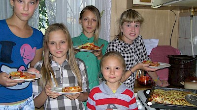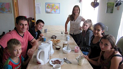 „Kinder, könnt ihr euch noch daran erinnern, wie wir im Sommerlager über unser Jahresthema nachgedacht haben: „Farbe ins Leben bringen!“?“ Die meisten unserer Gäste werden nur von Frauen erzogen, von der Mutter, einer Lehrerin. Da ist es etwas Neues, wenn ein Mann eine Gruppenstunde hält. Igor ist der Mann von Sweta, die unser Patenschaftsprojekt leitet. Er arbeitet in unserer Baubrigade.