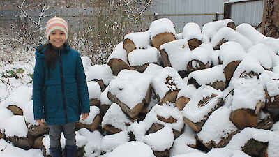 Julia, deren Stiefvater im Krieg gefallen ist, hilft der Mutter, die Vorratskammer mit Brennholz zu füllen. mehr