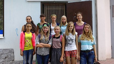 Heute geht ein Wunsch der Mädchen unserer „Lehrwerkstatt“ in Erfüllung, wir besuchen eine professionelle Nähwerkstatt. Larissa, die Leiterin, führt uns durch die Räume. Unsere Lehrlinge erstarren fast vor Ehrfurcht.