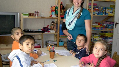 „Kinder, der Unterricht fängt an!“ Ganz aufgeregt flattern die „Spatzen“ in ihre Unterrichtsgruppen, die Kleinen zu Wera Beresniuk und die Großen zu Lena Uchnal. Wir sind zwar eine große Familie, in der wir zusammen essen, zusammen eine Geschichte hören, zusammen spielen, doch im Unterricht müssen sie geteilt werden.