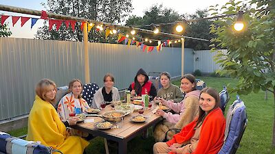 „Tante Nastja, kann uns Gott auch beschützen, wenn Bomben auf unsere Stadt fallen? Und kann Gott meinen Vater beschützen, der im Krieg ist?“ Es ist ganz still im Garten unserer Villa Regenbogen, als Nastja Bautina darüber spricht, dass Gott uns beschützt, ein Thema, das alle tief bewegt.