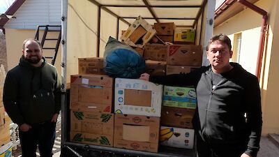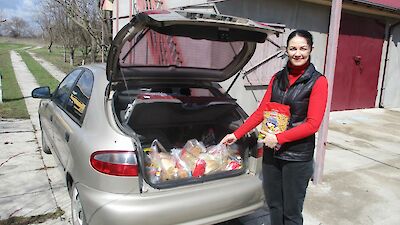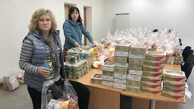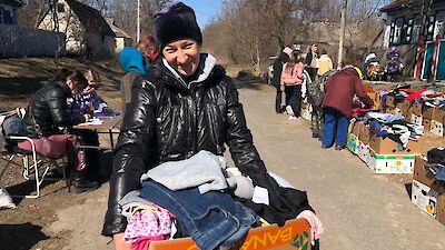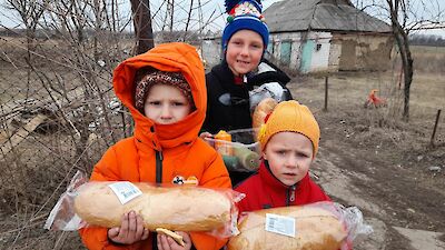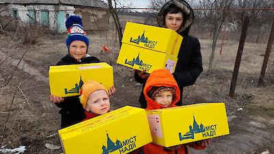 „Mama, Mama, schau mal, da ist Tante Mascha! Oh, sie hat ganz viele gelbe Kartons in ihrem Auto. Meinst Du, sie hat auch für uns etwas dabei?“ Die kleine Angelina steht mit großen Augen vor ihrer Hütte und strahlt, als Mascha Galagowetz, Leiterin im „Zufluchtsort“ Boschedarjiwka mehrere Hoffnungsboxen aus dem Kofferraum auslädt.