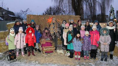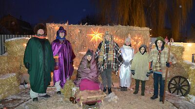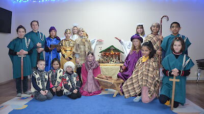 Anja Romaniuk liest die Weihnachtsgeschichte vor. Schritt für Schritt erscheint eine Person nach der anderen im Stall, Maria und Josef, die Hirten, die Weisen. Jedes Kinder soll seine Rolle in Ehrfurcht spielen, soll überlegen, was die Person, die sie spielt, in diesen heiligen Augenblicken gefühlt hat. Es herrscht Stille im Raum, tiefer Friede. mehr