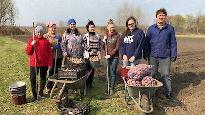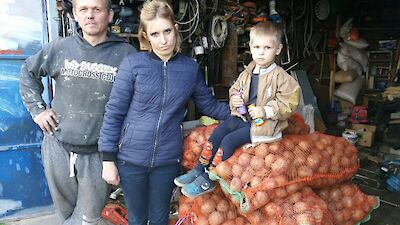 In diesen Tagen ist Luda Slobodianik, die unsere Hilfsgüteraktionen leitet, vom frühen Morgen bis zum späten Abend unterwegs. Auf ihrer Liste, die immer länger wird, stehen in diesen schweren Tagen arme Familien, die kein Geld für Saatkartoffeln haben, alte Menschen, Kranke, Flüchtlinge aus dem Kriegsgebiet.