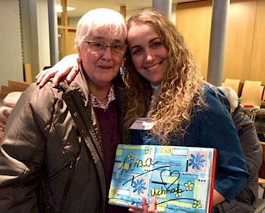 „Lenas Fröhlichkeit und Ausstrahlung beeindrucken mich! Und das, obwohl sie mit den Kindern in ihrer Seelsorge mit so viel Schlimmem konfrontiert wird!“ Christel Rutte aus Neumünster unterstützt Lena Uchnal mit einer Mitarbeiterpatenschaft und konnte sie beim „Soruschka“-Konzert in ihrer Heimatgemeinde ganz persönlich in den Arm nehmen.