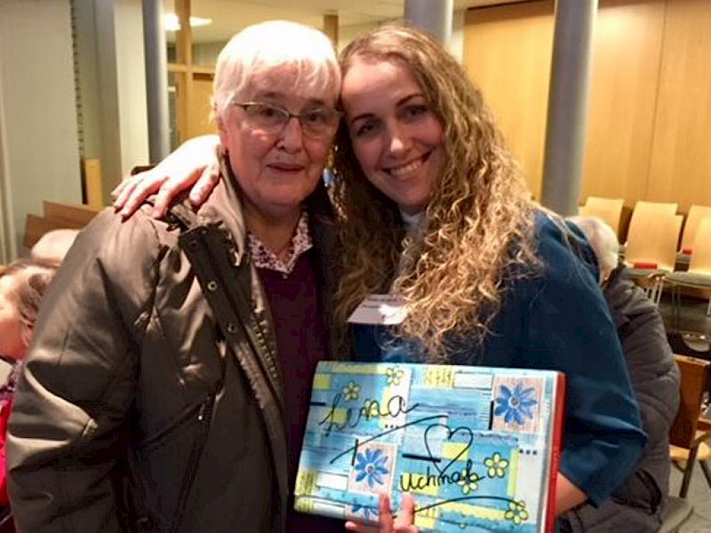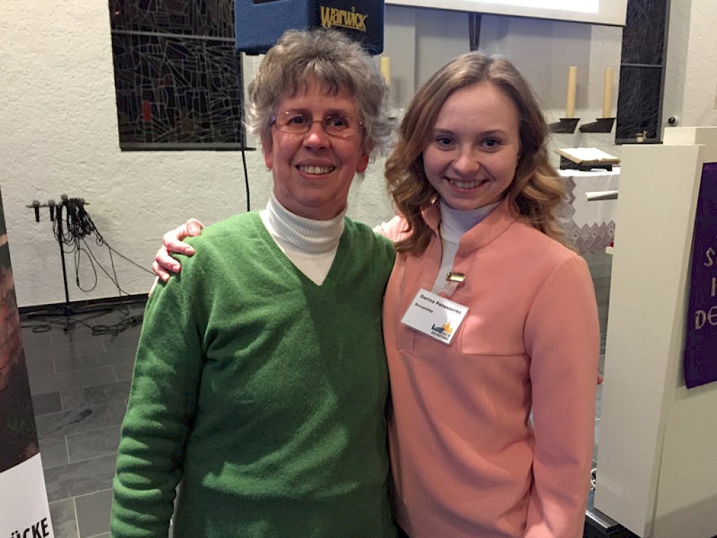 „Lenas Fröhlichkeit und Ausstrahlung beeindrucken mich! Und das, obwohl sie mit den Kindern in ihrer Seelsorge mit so viel Schlimmem konfrontiert wird!“ Christel Rutte aus Neumünster unterstützt Lena Uchnal mit einer Mitarbeiterpatenschaft und konnte sie beim „Soruschka“-Konzert in ihrer Heimatgemeinde ganz persönlich in den Arm nehmen.
