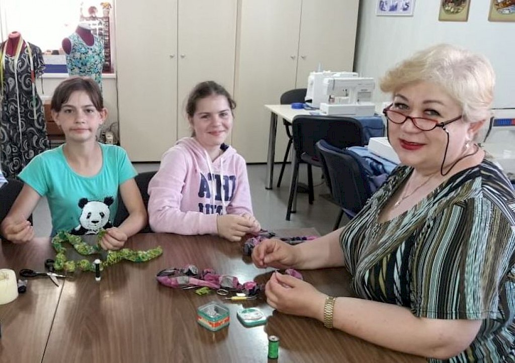 Lena Grabenko leitet unsere „Lehrwerksatt für Mädchen“ und das mit Herzblut. Jedes Mädchen, das wir aufnehmen, ist ihr wichtig und Lena hat es sich nicht nur zur Aufgabe gemacht, ihnen das Nähen beizubringen, sondern sie auch in ihrem Selbstwertgefühl und ihrer Persönlichkeitsentwicklung zu stärken.