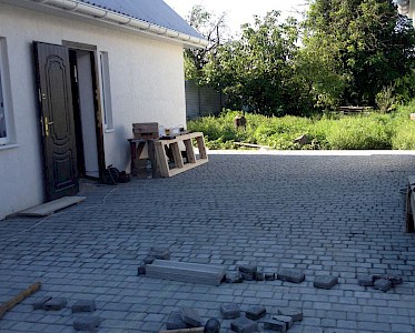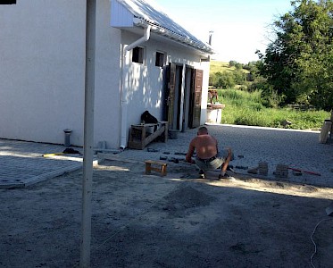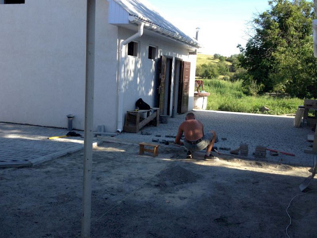 Bevor wir den Garten mit einem Gartenhaus und einem Spielplatz gestalten, wird erst einmal der Hof gepflastert. Doch trotz all der Arbeiten konnten bereits an drei Wochenenden „Tage der Stille“ stattfinden, zu denen wir besonders traumatisierte Kinder eingeladen haben.