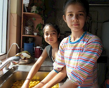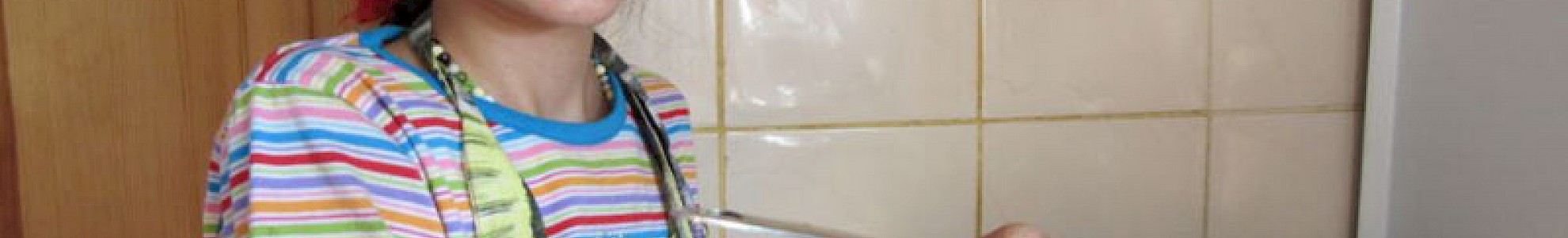 Zuerst müssen wir die Marmeladengläser vom letzten Jahr gründlich waschen. In der Zwischenzeit können einige Mädchen die Beeren und die Pflaumen vorbereiten. Jeder kann mithelfen.