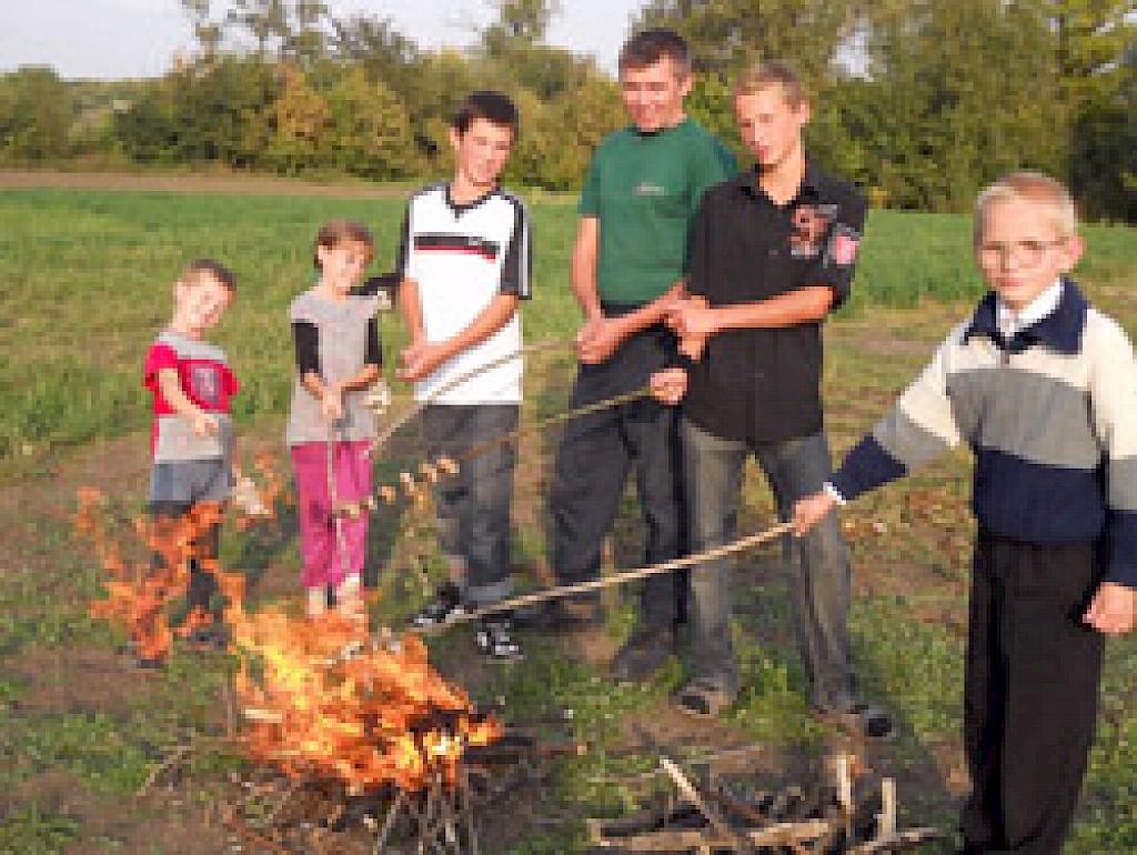 Alle Jungen und Mädchen, die unseren „Zufluchtsort“ in Odarjewka besuchen, kommen aus kaputten Familien. Für sie gibt es jeden Tag die gleichen Eindrücke in ihren ärmlichen Hütten, mit schwerer Gartenarbeit und dem Versorgen ihrer Tiere. Zum Herbstanfang haben wir unsere kleinen Gäste zu einem Herbstfest eingeladen. Jaroslaw, der unsere Jungen betreut, organisierte ein lustiges Lagerfeuer. Mascha, seine Frau, war mit unseren Mädchen für das Essen zuständig. Die fröhlichen Lieder und spannenden Spiele haben uns alle begeistert und haben sicher tiefe Spuren in den Herzen unserer Kinder hinterlassen. Zum Abschied umarmte der vierjährige Jarik Jaroslaw und wollte ihn nicht mehr loslassen. Bewegt flüsterte er immer wieder: „…danke Onkel Jaroslaw, danke…“
