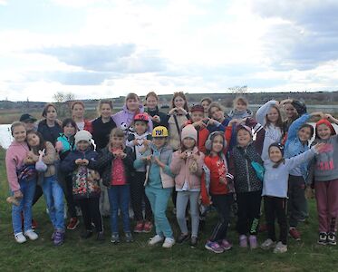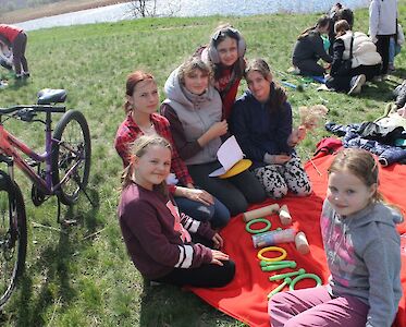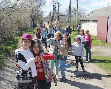 „Schaut mal nach links, die Aprikosenbäume blühen wunderschön. Und rechts seht ihr Tulpen in voller Pracht.“ Maja fungiert als Führerin. An diesem warmen Tag machen alle Kinder unseres Zufluchtsorts ein Picknick am Teich. „Ich glaube, dass nur wenige Vögel zurück nach Pawliwka gekommen sind. Meine Oma sagt, das liegt am Krieg. Die Vögel fühlen sich bedroht.“